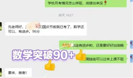他说因为对数学学习兴趣不高,再加上状态一直不理想,一度萌生了“摆烂”的想法。但在老师家长的关心帮助下,会经常性地沟通,个性化的规划,非常细节的讲解,随时在线答疑解惑。家长也能及时从老师那里得到专业的学情反馈与建议,家校配合很紧密。这样的氛围烘托下,终于重燃学习兴趣,也更愿意与父母老师分享学习的收获与困惑,激发自己找到了那把“学习的钥匙”。