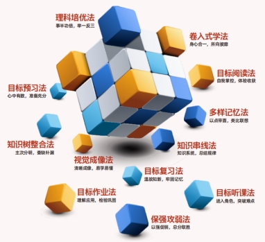 “目标学习法”:通过目标预习、目标听课、目标作业、目标复习……让学生成为学习真正的主人,通过四大目标闭环提升学生心力、丰盛心法、倍增心能,实现“学习难学”到“难学能学”的突破……